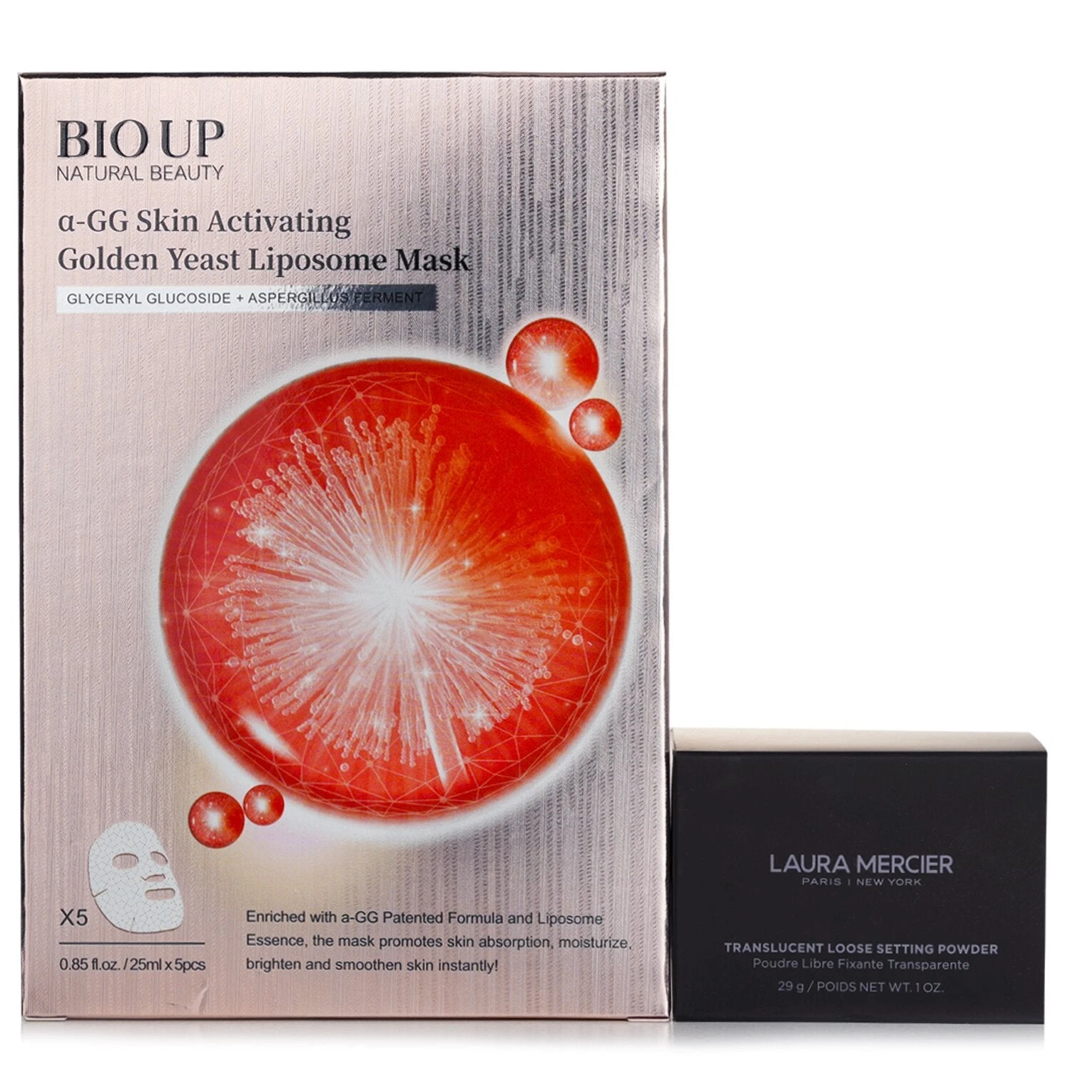 Sets 1x Natural Beauty BIO UP a-GG Skin Activating Golden Yeast Liposome Mask – 5x25ml/0.84oz 1x Laura Mercier Loose Setting Powder – Translucent – 29g/1oz
